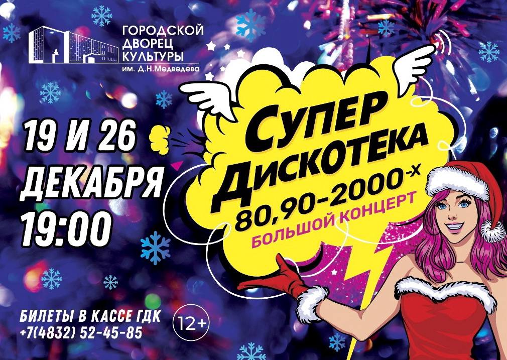 АНОНСЫ МЕРОПРИЯТИЙ. ГДК им.Д.Н.Медведева приглашает на ГЛАВНУЮ СУПЕР ДИСКОТЕКУ 80-х, 90-х и 2000-х! 19 И 26 ДЕКАБРЯ В 19:00 Приготовьтесь к самому громкому и ностальгическому событию декабря! Дворец культуры имени Д.Н....