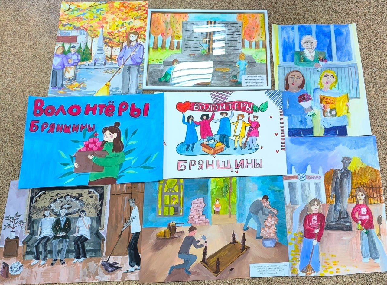 Юные художники из ДШИ № 1 им. Т.П. Николаевой, № 6, № 10, Брянской ДХШ, Глинищевской, Жуковской, Рогнединской, Сещинской, Клетнянской, Навлинской ДШИ, Дятьковской ДХШ, Карачевской ДШИ им. В.Ф. Кольцова, Унечской ДХШ, ДШИ им. Е.М. Беляева г. Клинцы посвятили свои работы деятельности добровольцев в сфере культуры.