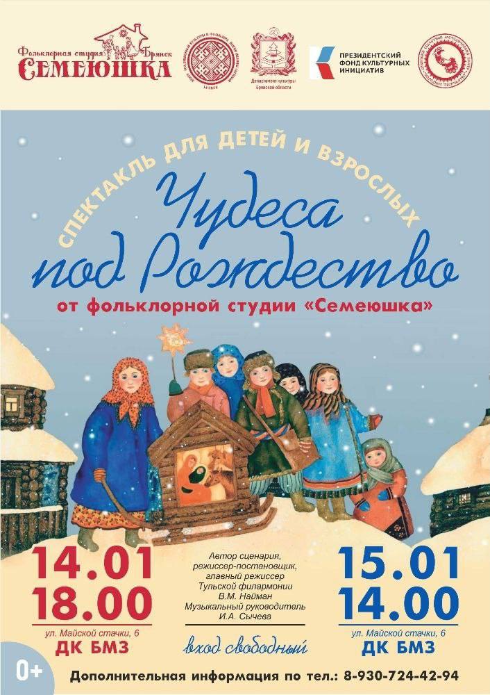 14 января (18.00) и 15 января (14.00) во Дворце культуры БМЗ Центра «Народное творчество» состоится уникальный рождественский спектакль для детей и взрослых «Чудеса под Рождество».
