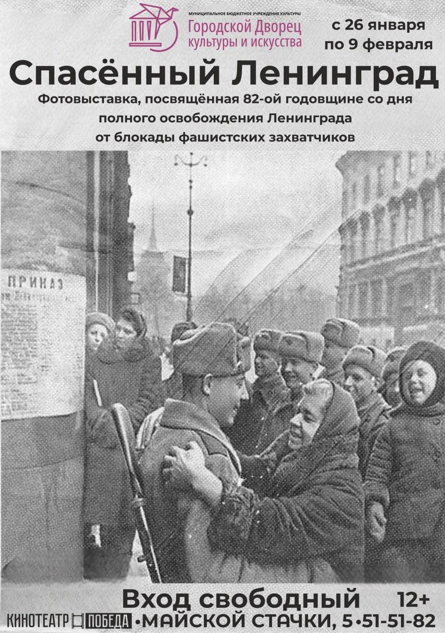 В честь 82-й годовщине полного снятия блокады, Городской Дворец культуры и искусства приглашает на фотовыставку «Спасённый Ленинград».