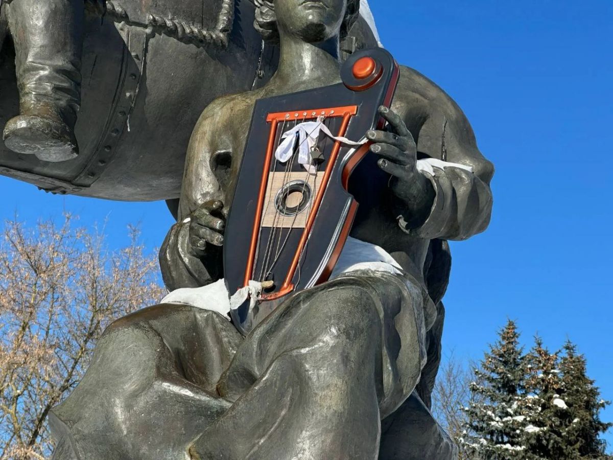 В мэрии напомнили, что гусли у Баяна не аутентичные. В 2023 году их украли и так и не нашли. Новые за собственный счёт подарил депутат горсовета Игорь Болунев.
