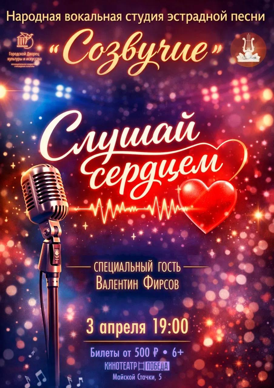 Народная вокальная студия эстрадной песни «Созвучие» приглашает зрителей на концертную программу в Городской Дворец культуры и искусства!