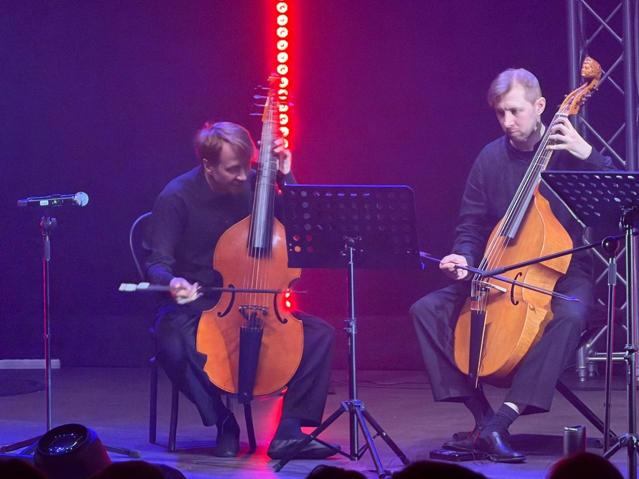 На сцене в рамках 34 Международного фестиваля современного искусства им. Н. Рославца и Н. Габо прошла концертная программа «Песни Элиота». Зрителей очаровало звучание инструмента, который в живую можно услышать отнюдь не часто. Виола да гамба дошла до наших дней еще с Эпохи Возрождения, а сделать так, чтобы она "пела" способны единицы! Исполнители проекта — Руст Позюмский и Алиса Тен — представляют собой уникальный пример современных музыкантов-универсалов, а специальным гостем выступил контрабасист, широко-известных в джазовых кругах, Владимир Волков.