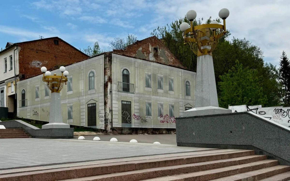 Вступивший в силу приказ детально перечисляет, что именно подлежит защите: исторические капитальные стены, штукатурные фасады, лучковые перемычки, профилированные наличники, декоративные пояса, карнизы, лопатки, фронтон со слуховым окном и даже градостроительная роль здания. Проблема в том, что многого из этого перечня уже не существует: фасад скрыт баннером с нарисованным «правильным» обликом, под которым — оголенная кирпичная кладка, осыпавшаяся штукатурка и полуразрушенные стены.