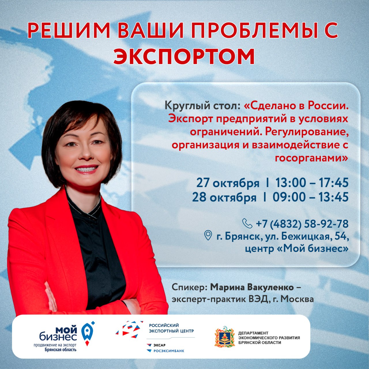 Место проведения: Брянск, ул. Бежицкая, 54, центр «Мой бизнес». Регистрация до 17 октября по ссылке.