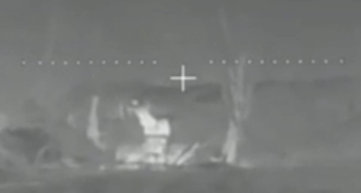 Оператор БПЛА, несмотря на плохую видимость из-за ночного времени, смог поразить цель. На кадрах видно точное попадание.