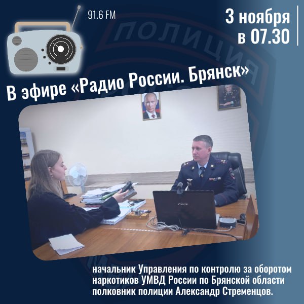 Друзья, завтра в 07.30 в эфире «Радио России. Брянск» 91.6 FM выступит начальник Управления по контролю за оборотом наркотиков УМВД России по Брянской области полковник полиции Александр Стременцов