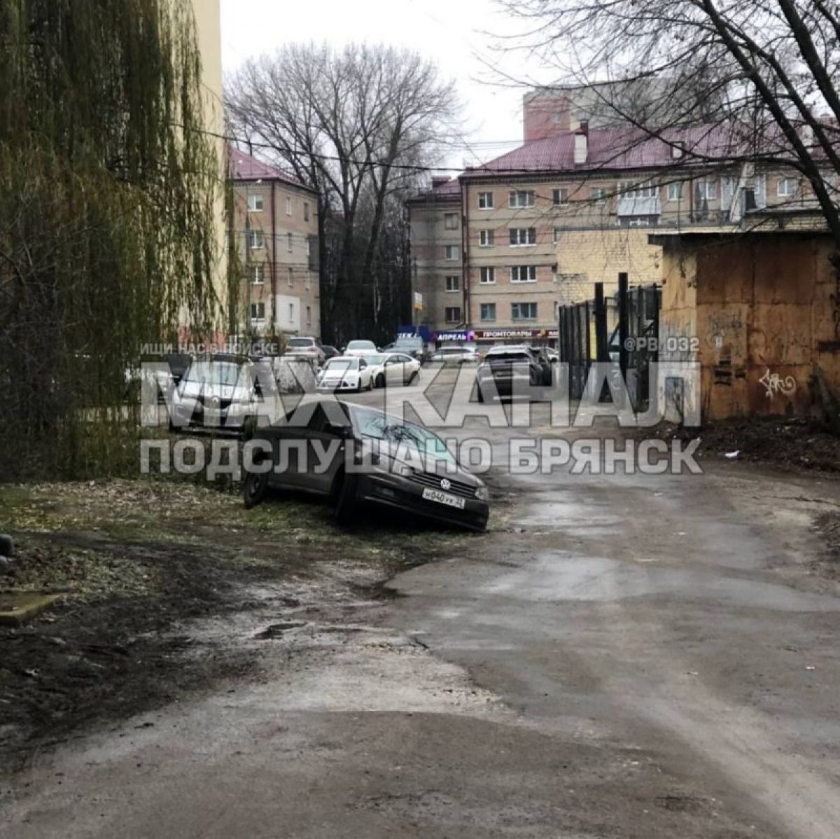 Сегодня, 19 ноября, в Брянске в районе «Полтинника» легковой автомобиль немецкой марки провалился под землю передним колесом в огромную дыру. Кадрами поделились горожане в соцсетях.