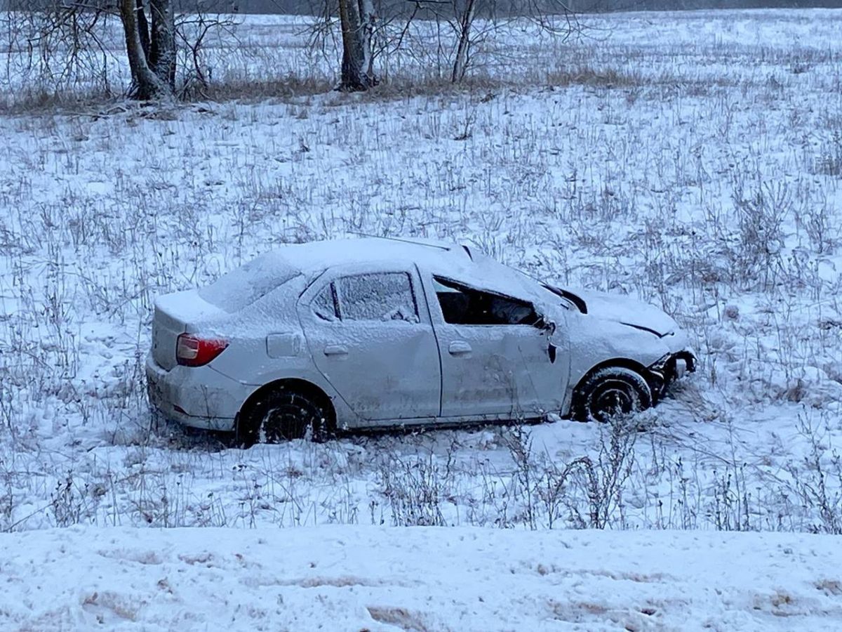Легковушка вылетела с трассы и перевернулась.