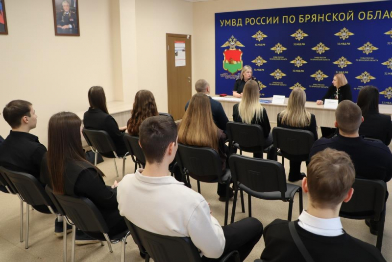 В зале для проведения брифингов УМВД России по Брянской области представителей студенчества приветствовали заместитель начальника Управления по работе с личным составом УМВД России по Брянской области полковник полиции Евгения Малолеткова, начальник отдела информации и общественных связей УМВД полковник внутренней службы Жанна Чернявская и председатель Общественного совета при региональном УМВД Елена Гришина.