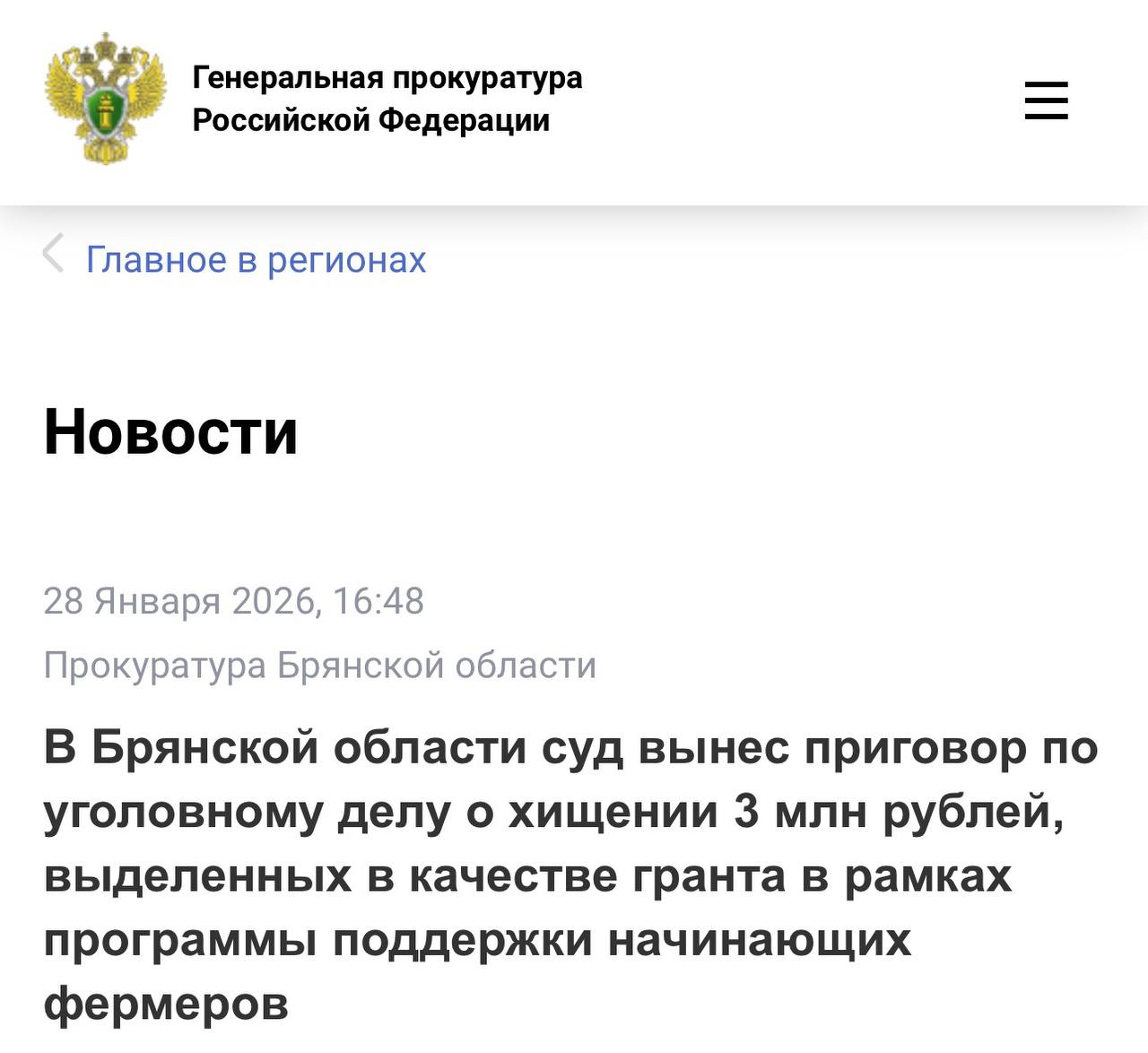 Установлено, что в 2019-2020 гг. подсудимая с сообщником (уголовное дело в отношении которого прекращено в связи со смертью) путем предоставления заведомо ложных сведений в рамках государственной программы «Поддержка начинающих фермеров» незаконно получили грант в размере 3 млн рублей на разведение крупного рогатого скота на территории Жуковского муниципального округа.