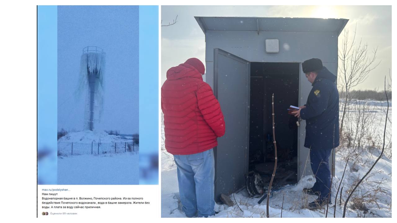 Помощник прокурора Даниил Петров совместно с аварийной бригадой районного водоканала выехал на место для проверки. В ходе осмотра водонапорной башни предварительно установлено, что в связи с ненадлежащей организацией водоотведения произошло частичное разрушение конструкции, ставшее причиной образования наледей.