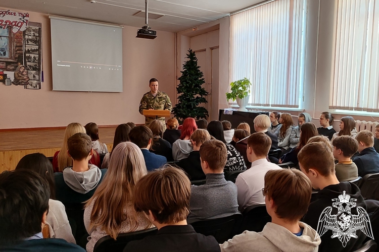 Особое внимание в ходе встречи было уделено рассказу о вузах Росгвардии, порядке поступления и обучения, специальностях и перспективах, открывающихся перед выпускниками. Ребята посмотрели ролики и задали интересующие их вопросы.