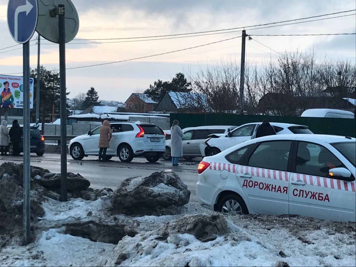 Кроме того, свидетели дорожного происшествия поделились кадрами. Судя по снимкам, столкнулись три легковых автомобиля. Есть ли пострадавшие пока неизвестно.