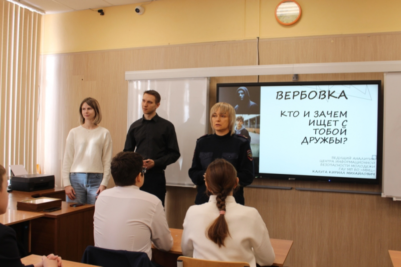 В начале встречи стражи порядка обсудили с ребятами актуальную проблему – обеспечение безопасного поведения в сети «Интернет», напомнили ребятам о правилах и способах противодействия лицам, пытающимся вовлечь подростков в противоправную деятельность.