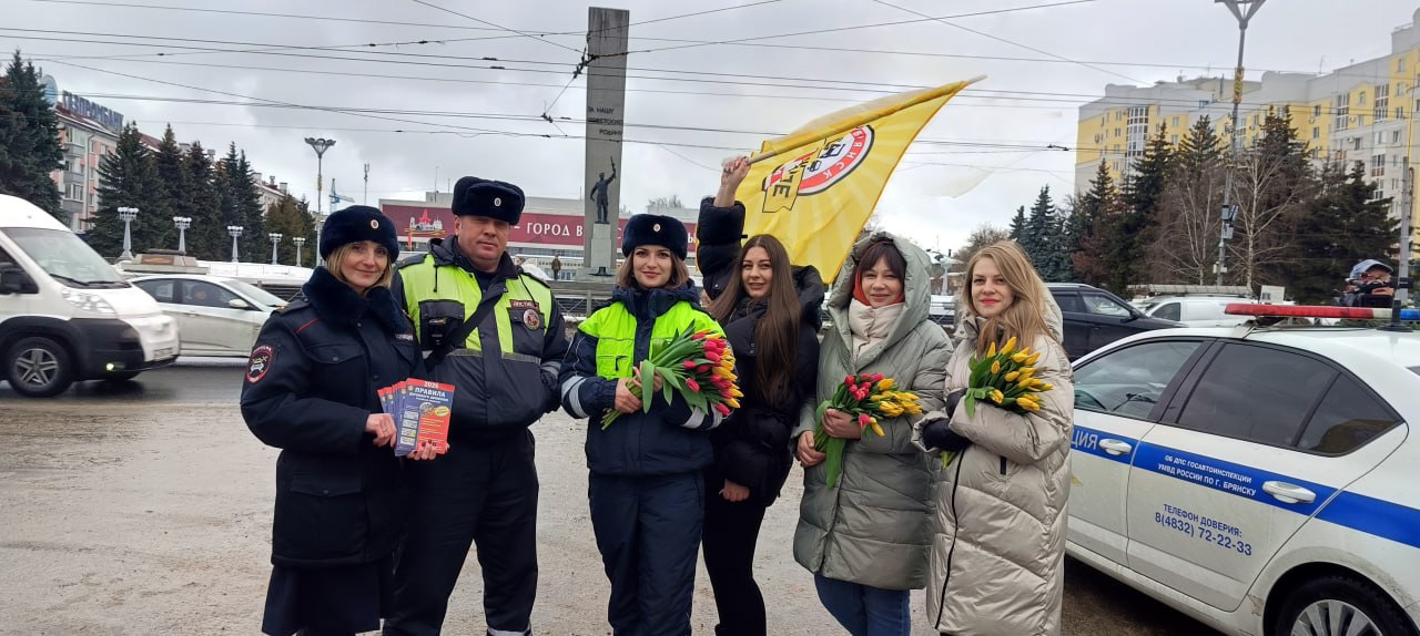 В Брянске инспекторы ДПС поздравили жительниц города с 8 марта
