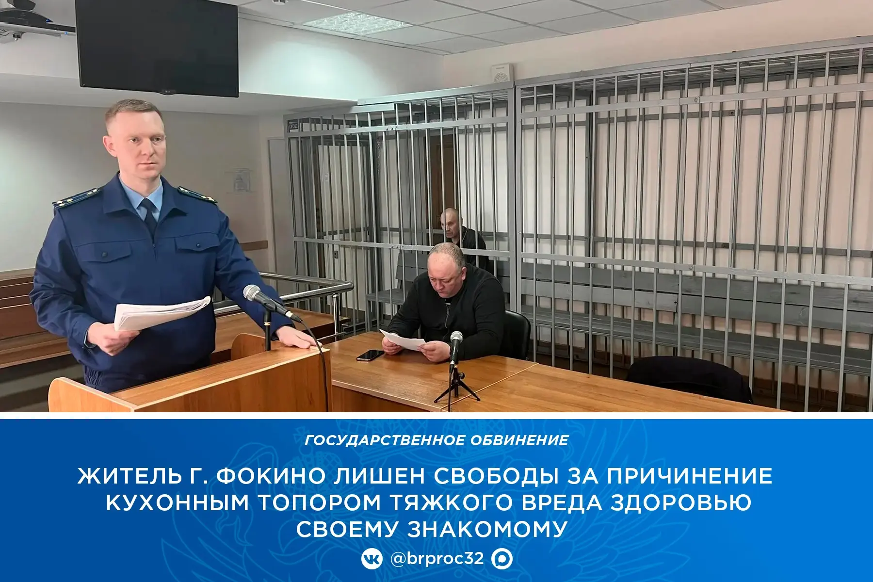 В Дятьково вынесен приговор в отношении ранее судимого 63-летнего жителя Фокино, ударившего своего знакомого кухонным топором по голове.