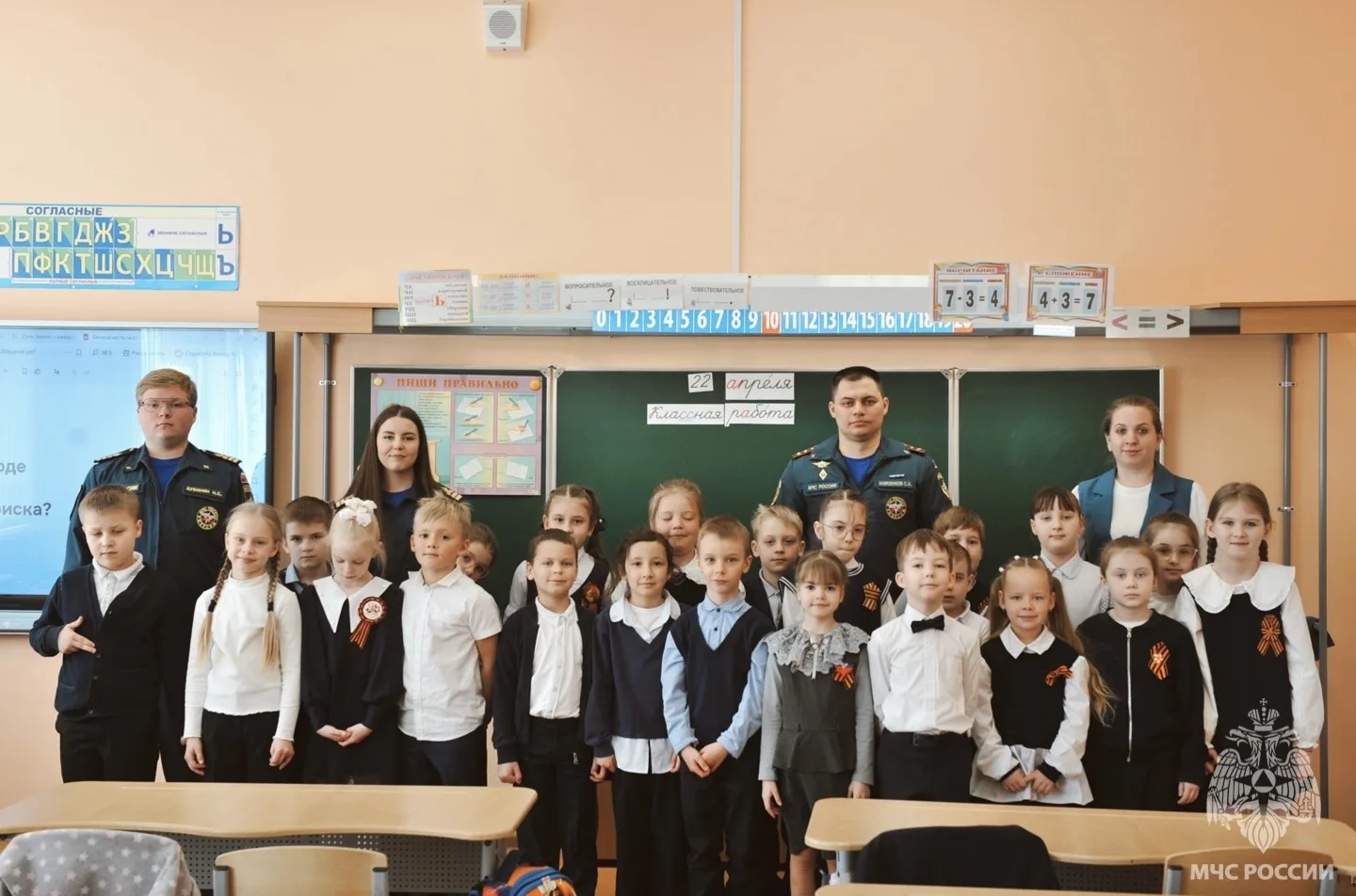 Урок для первоклассников был организован в интерактивной форме. Сотрудники МЧС России рассказали детям о правилах поведения при пожаре и задымлении, а также о мерах предосторожности на воде в летний период. Ученики 1 «А» класса смогли примерить боевую одежду пожарного, спасательный жилет, а также получили полезные памятки о безопасности.