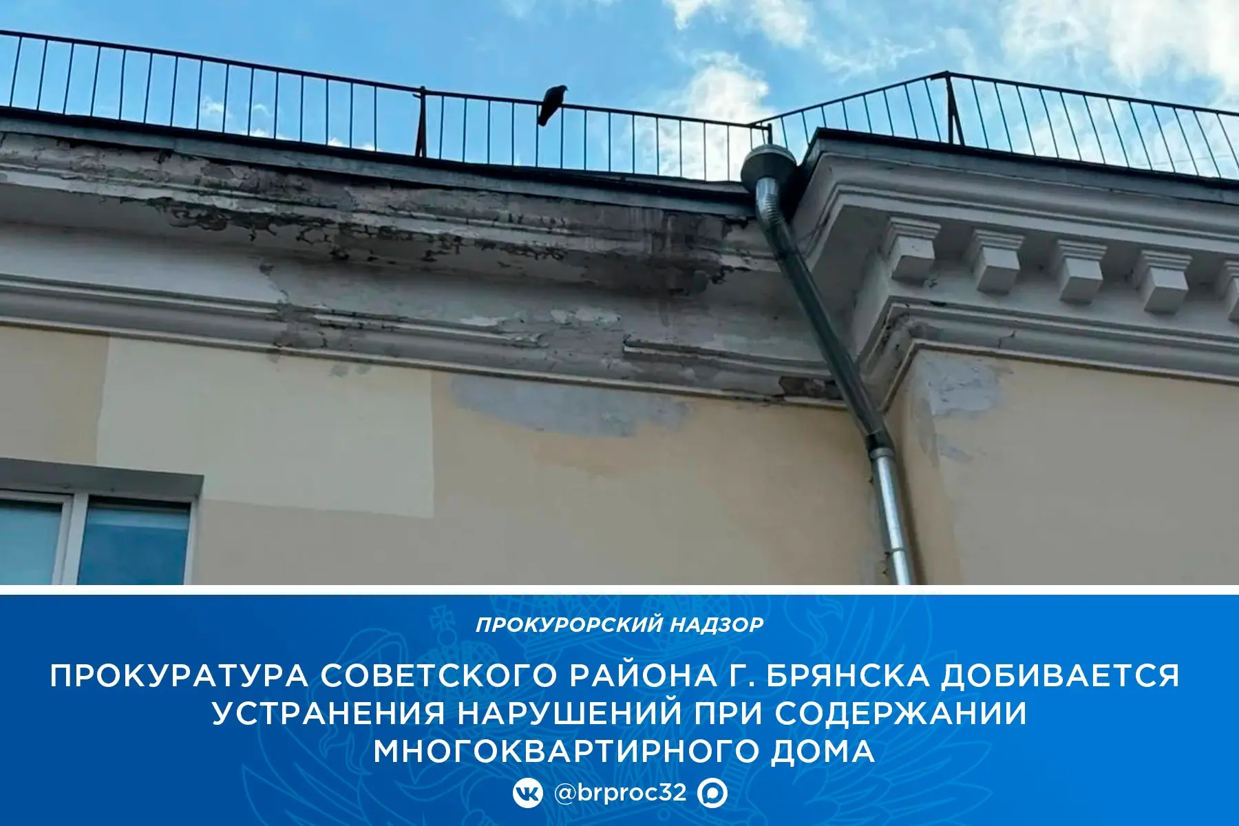 Многоквартирный дом № 37а по ул. Фокина в г. Брянске долгое время оставался без ремонта. Управляющая компания не обращала внимания на его фасад, балконную плиту, карнизные свесы и водоотводы.
