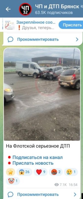 Об аварии рассказал ТГ-канал «ЧП и ДТП Брянск» сегодня в 16 часов 54 минуты.