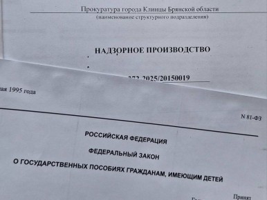 Прокуратурой города Клинцы проведена проверка по обращению местной жительницы об отказе в назначении единовременного пособия при рождении ребенка.Установлено, что ОСФР по Брянской области необоснованно отказано женщине в назначении выплаты...