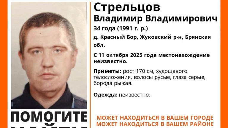 Пропал 34-летний Владимир Стрельцов из Жуковского района