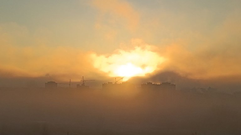 В Брянске засняли туманный рассвет при морозной погоде