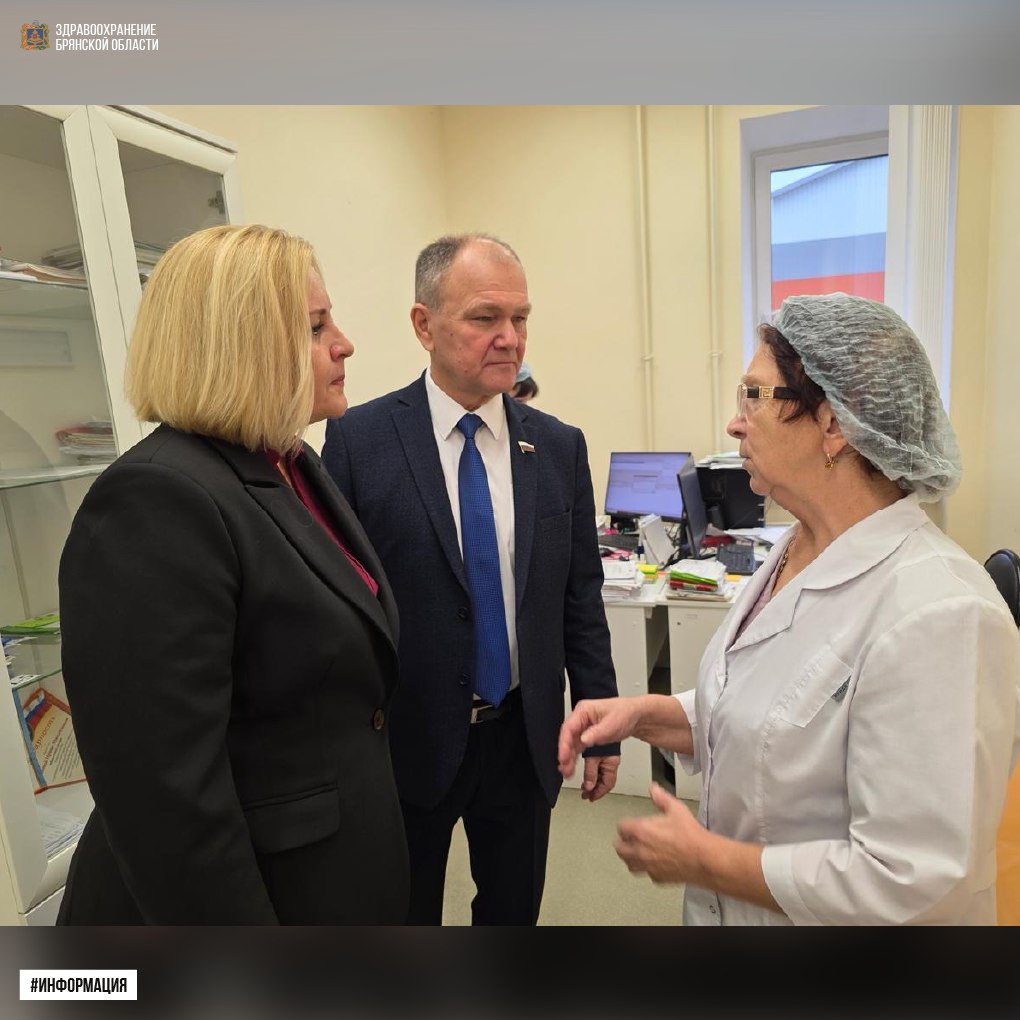 Депутат Государственной Думы Николай Щеглов совместно с главным внештатным специалистом по терапии департамента здравоохранения Брянской области Оксаной Митиной и представителями районной администрации посетил Брянскую межрайонную больницу. Главный врач больницы, Андрей Бизенков, ознакомил с работой поликлиники №2 и Добрунской врачебной амбулатории.