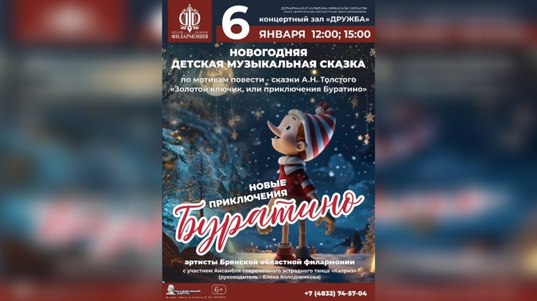 Юные брянцы увидят новогодние приключения Буратино на сцене филармонии