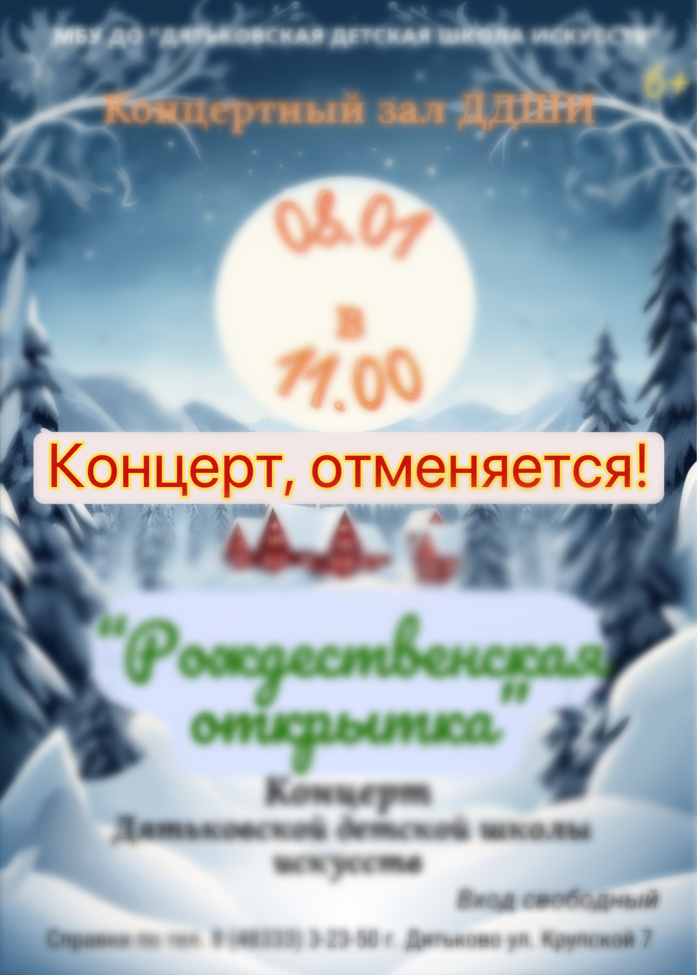 Концерт школы искусств "Рождественская открытка" 8 января отменяется.