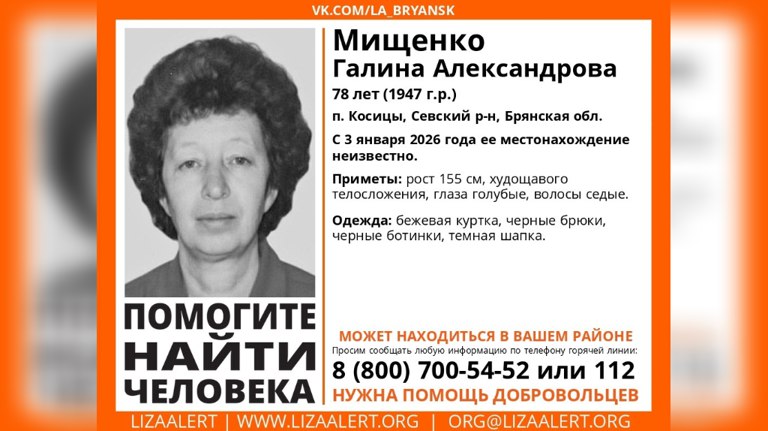 В Брянской области без вести пропала 78-летняя Галина Мищенко