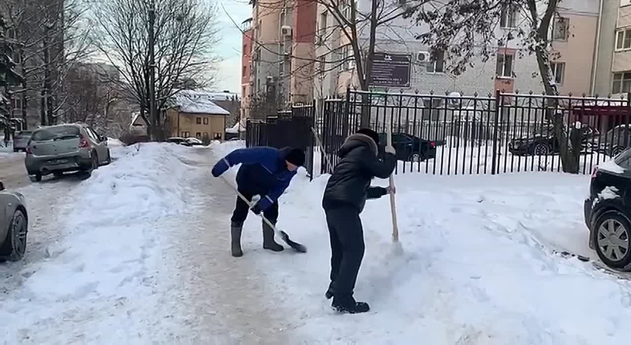 Сегодня сотрудники департамента внутренней политики Брянской области приняли участие в акции «Снежный десант» и вышли на уборку снега в городе.