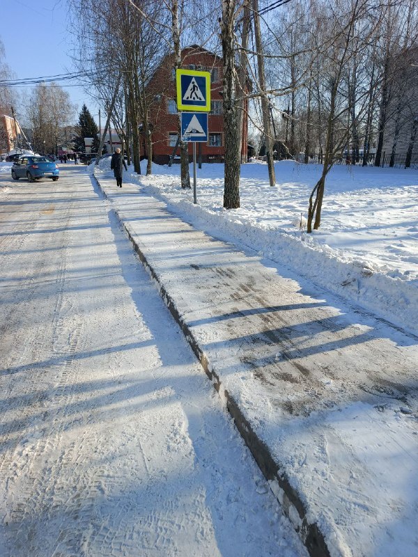 К нам поступило обращение от жителей поселка Путевка с просьбой очистить тротуар между зданием МБОУ "Снежская гимназия Брянского района" и домом №7 на улице Строителей. Причина была серьезной: автомобили, приезжающие забирать детей, регулярно заезжали на недавно обустроенный тротуар, создавая неудобства и даже конфликтные ситуации с пешеходами.