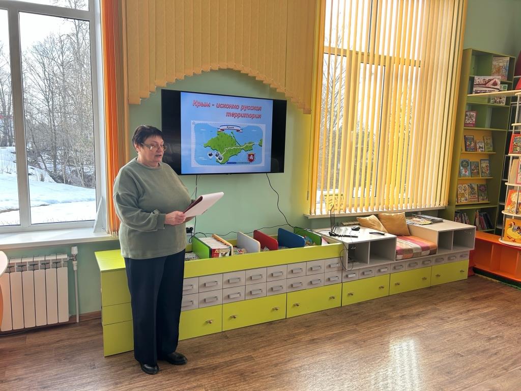 18 марта мы отмечаем важный праздник – День воссоединения Крыма с Россией. Именно в этот день в 2014 году Крым официально вошёл в состав Российской Федерации. Воссоединение Крыма с Россией — это знаковое событие, которое открывает новую страницу в истории нашего полуострова. В этом году исполняется 12 лет с той исторической даты, когда свершилось поворотное событие. В честь знаменательного праздника в Выгоничской детской библиотеке прошёл познавательный час « Маленький полуостров большой страны». Библиотекарь подготовила увлекательный рассказ об истории нашего удивительного полуострова, о важных событиях в истории республики, о значении Крыма для России. Ребята узнали не только об историческом прошлом Крымского полуострова, но послушали и о народах, проживающих в Крыму, об их культурном наследии. Рассказ библиотекаря сопровождался показом презентации «Крым и Россия».