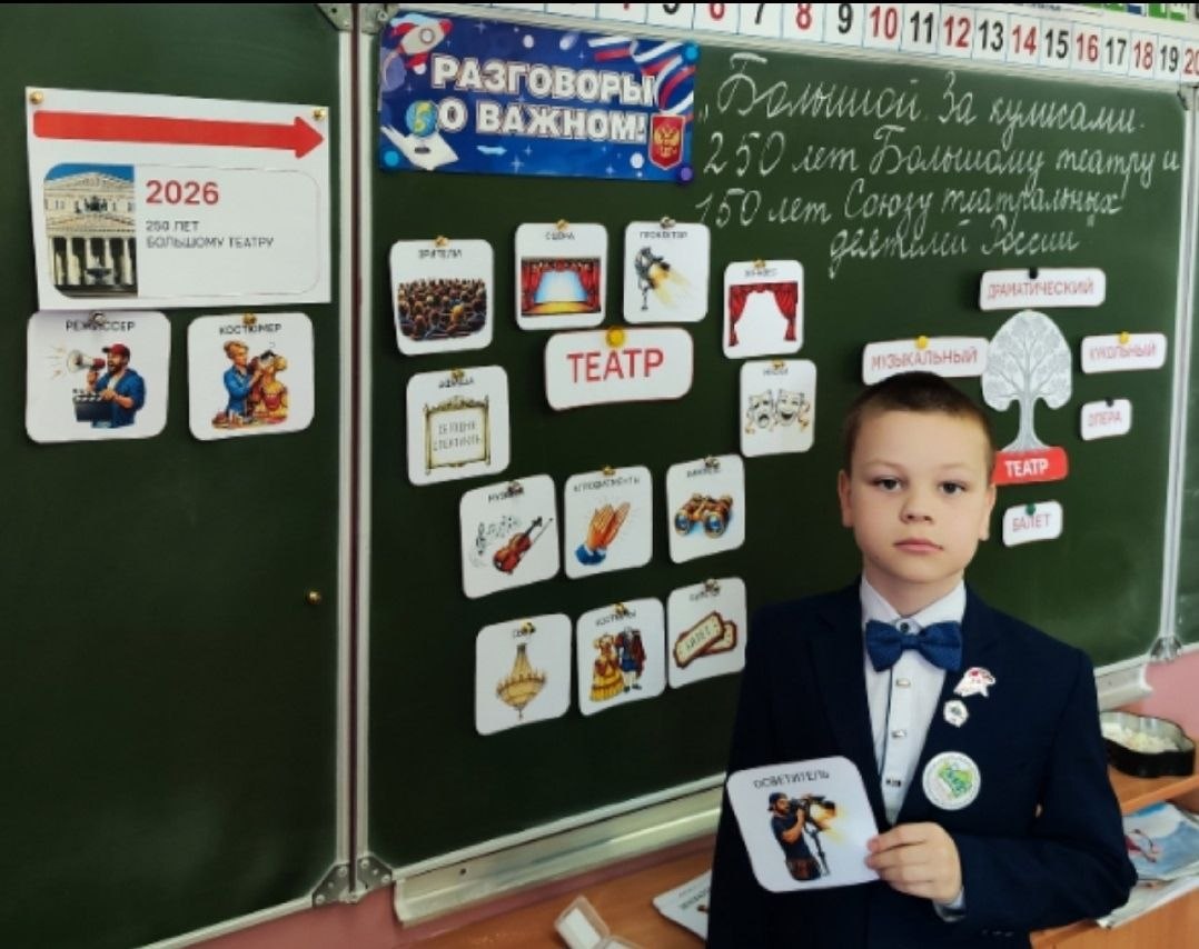 23 марта в Лопушской школе прошло очередное занятие «Разговоры о важном» на тему «Большой. За кулисами. 250 лет Большому театру и 150 лет Союзу театральных деятелей России».