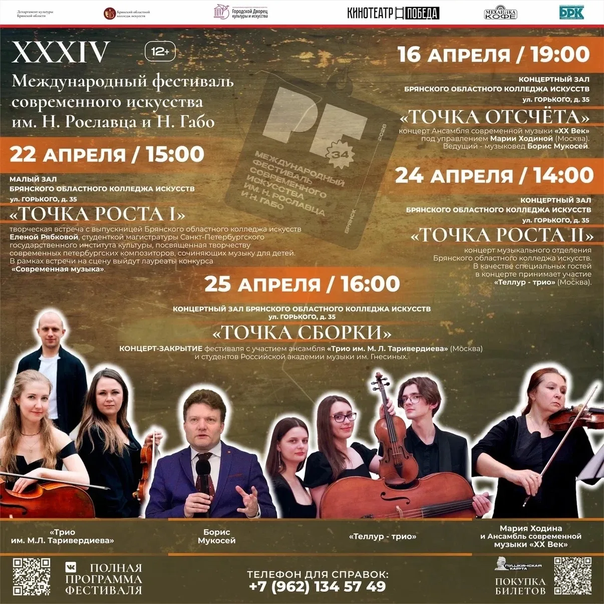 16 апреля Ансамбль современной музыки «ХХ век» под управлением Марии Ходиной сыграет в Брянске программу «Точка отсчёта». В ней — пять имён, из которых складывается фундамент всего, что наш Фестиваль делает эти тридцать с лишним лет: Рославец, Мосолов, Лурье, Голышев, Белодубровский. Люди, чья музыка когда-то искала новый язык для описания мира, и чьи партитуры десятилетиями ждали, когда их извлекут из архивов.