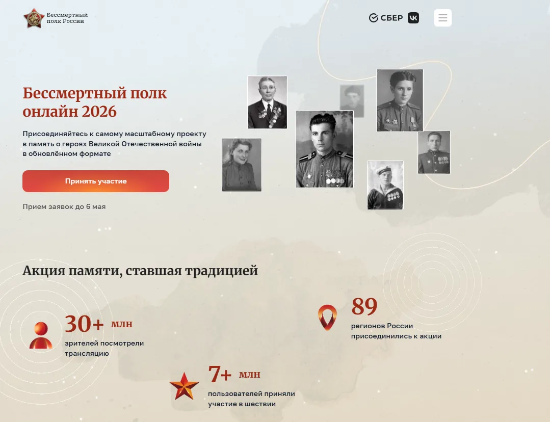 9 Мая 2026 года, в честь 81-й годовщины Великой Победы, на официальном сайте проекта «Бессмертный полк России» состоится масштабное онлайн-шествие.