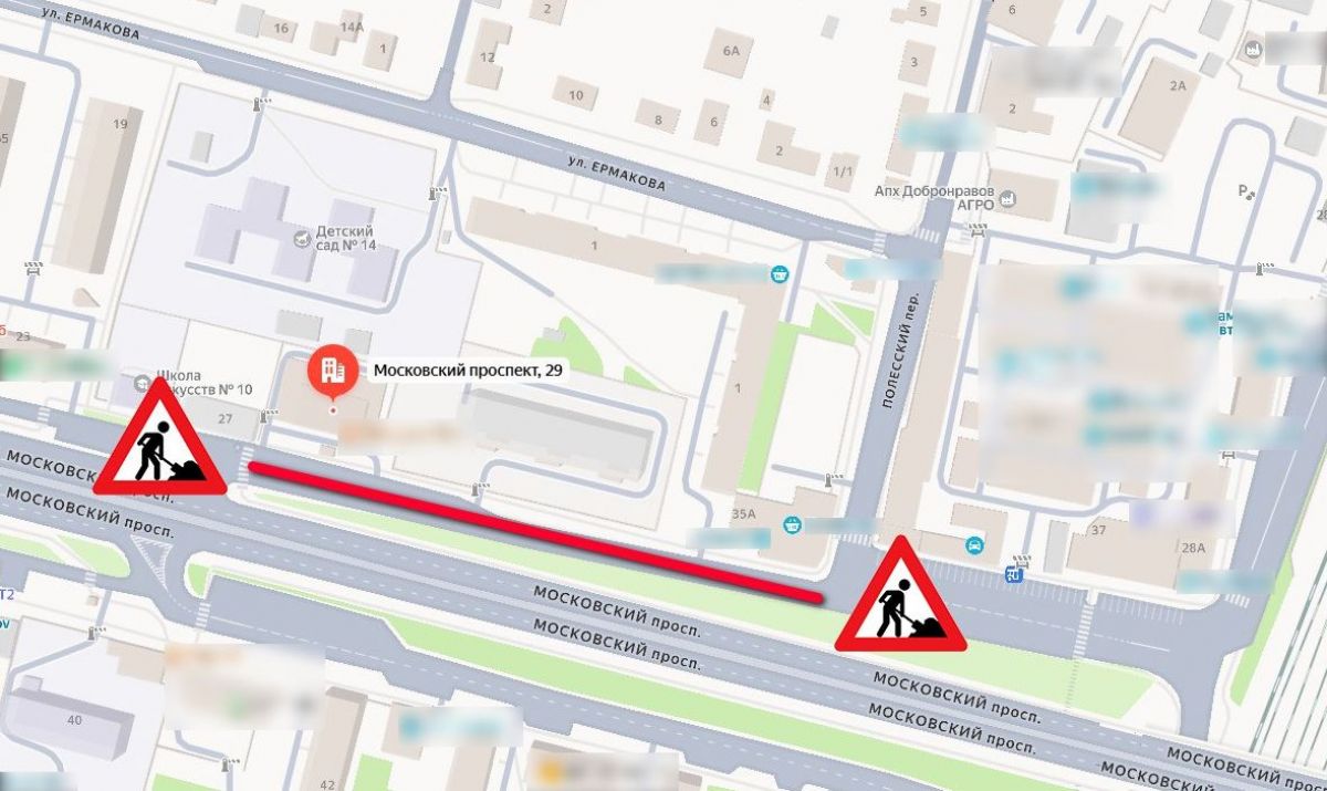 В течение трех дней сотрудники городского водоканала будут проводить на перекрытом участке аварийно-восстановительные работы. Ограничения вводятся на дороге-дублере Московского проспекта между домами № 29 до № 35А.