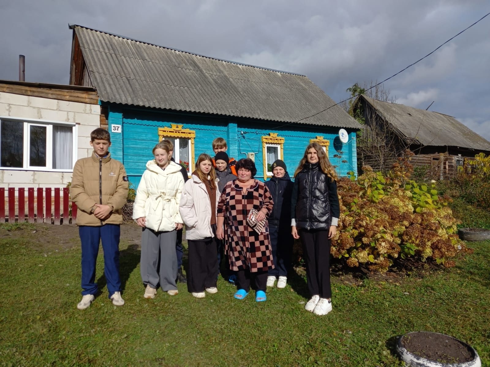 Осенняя Неделя Добра. Акция "Ветеран живет рядом. Учащиеся 5,8 классов Утынской школы оказывают помощь Юрасовой Валентине Алексеевне в уборке территории у дома участника СВО Фроленкова Алексея, ее сына.