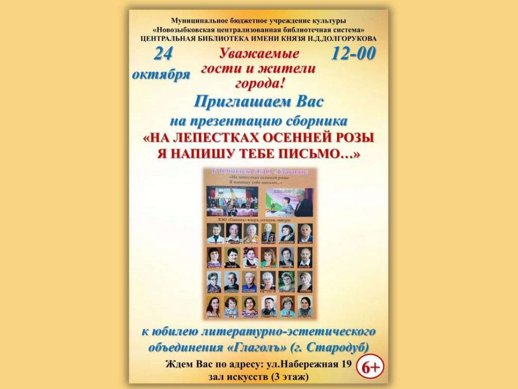 Приглашаем вас 24 октября на презентацию сборника «На лепестках осенней розы Я напишу тебе письмо…»