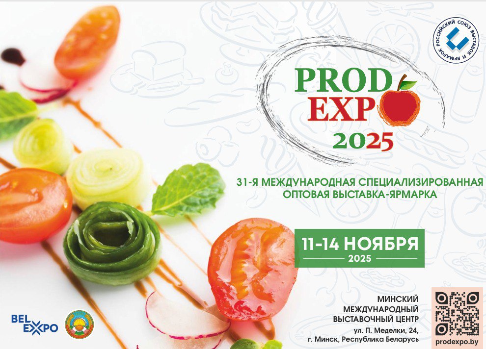 С 11 по 14 ноября 2025 года в г. Минске Республики Беларусь пройдет 31-я Международная специализированная оптовая выставка-ярмарка «ПРОДЭКСПО — 2025».
