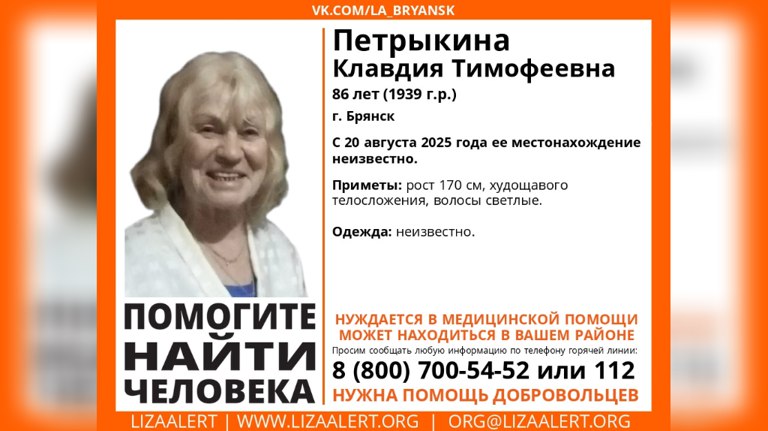 О местонахождении Клавдии Петрыкиной ничего не было известно с 20 августа.