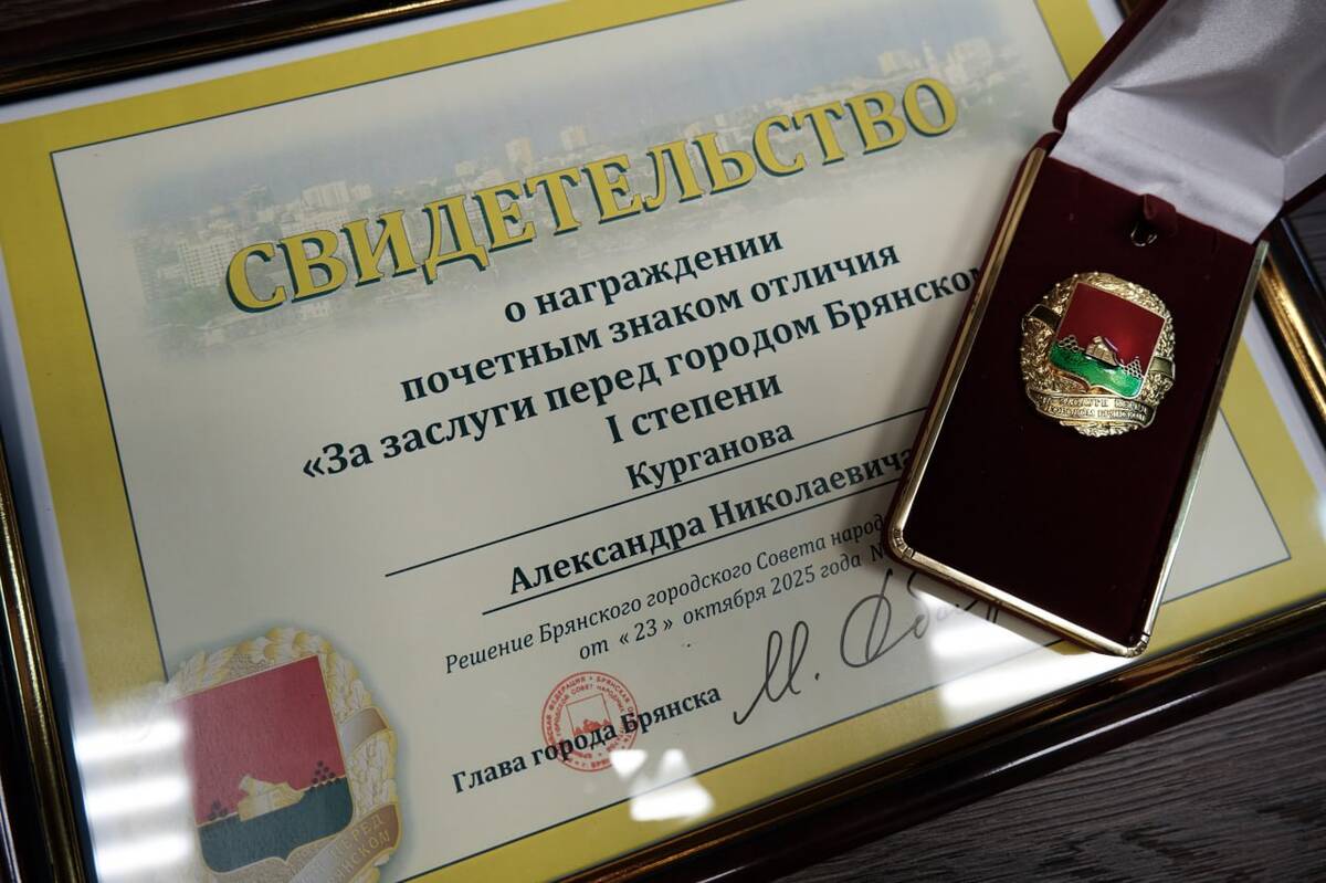 На заседании Брянского городского Совета председатель областного суда Александр Курганов был награжден почетным знаком «За заслуги перед городом Брянском» I степени. Награду вручила глава города Марина Дбар.