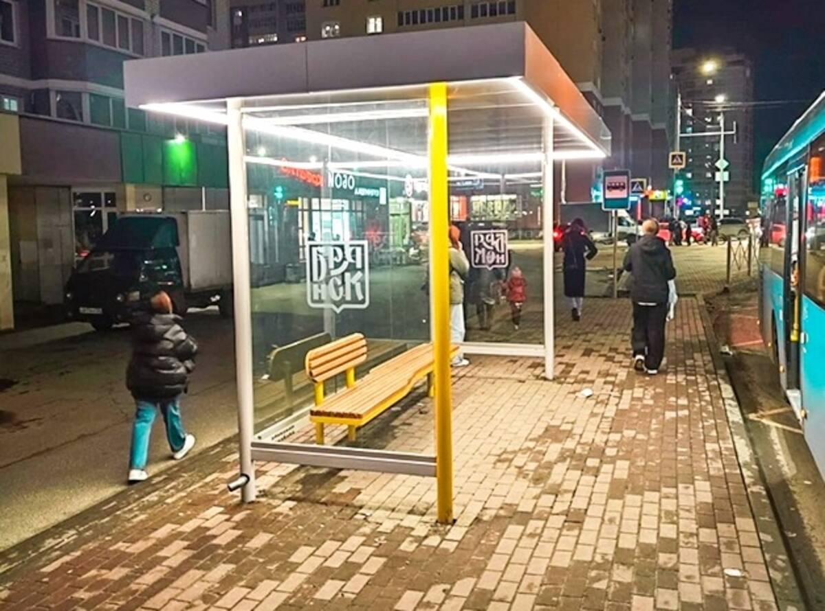 Новые остановки оборудованы противоударными стёклами. В каркас крыши встроена светодиодная подсветка.
