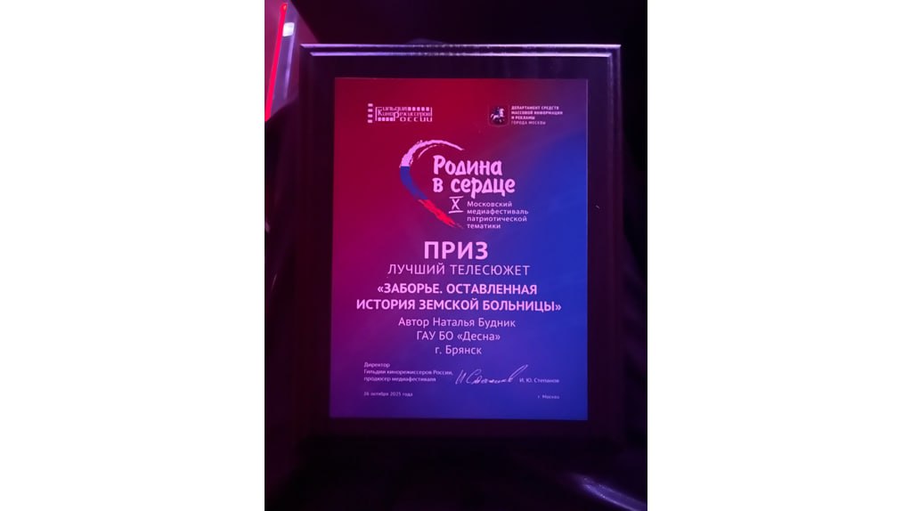 Проект «Брянской Губернии» стал лучшим на 10-м московском медиафестивале «Родина в сердце». В финал вышли работы брянских журналистов «Познай свой край» и «Заборье. Оставленная история земской больницы».