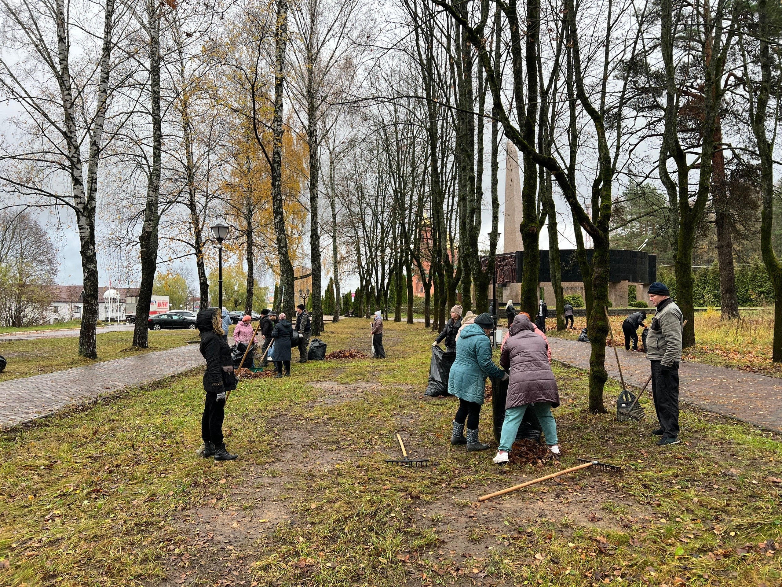 Совместными усилиями участники субботника собрали опавшую листву и убрали мусор.