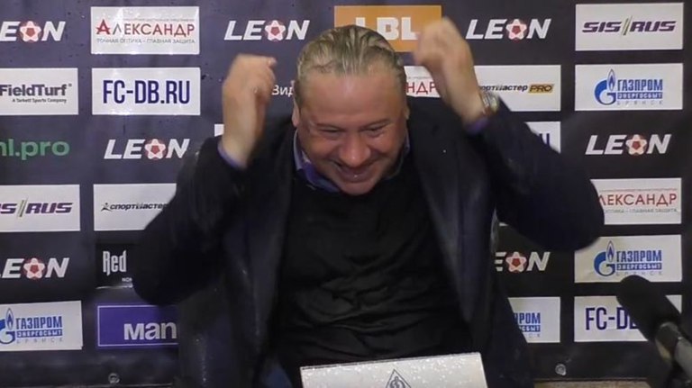 Тренер брянского «Динамо» принял душ на послематчевой пресс-конференции