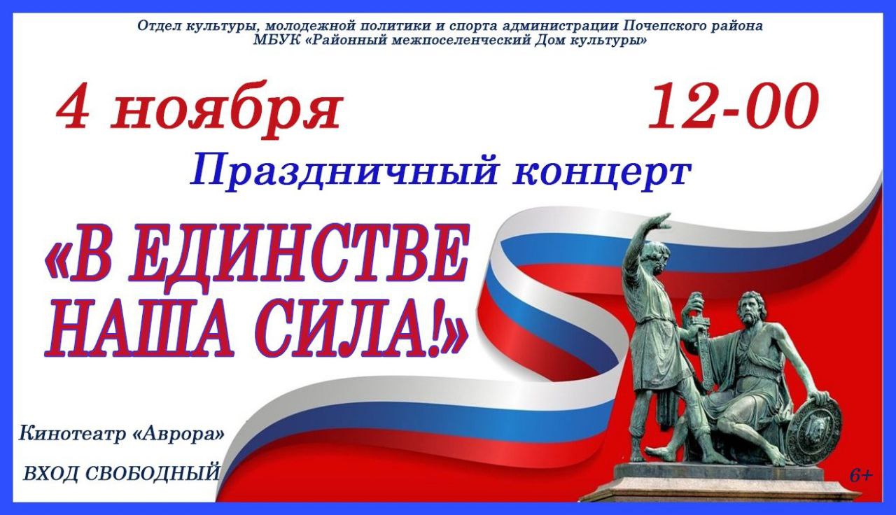 Приглашаем вас на праздничный концерт в кинотеатр "Аврора" 4 ноября 2025 года в 12.00 часов.