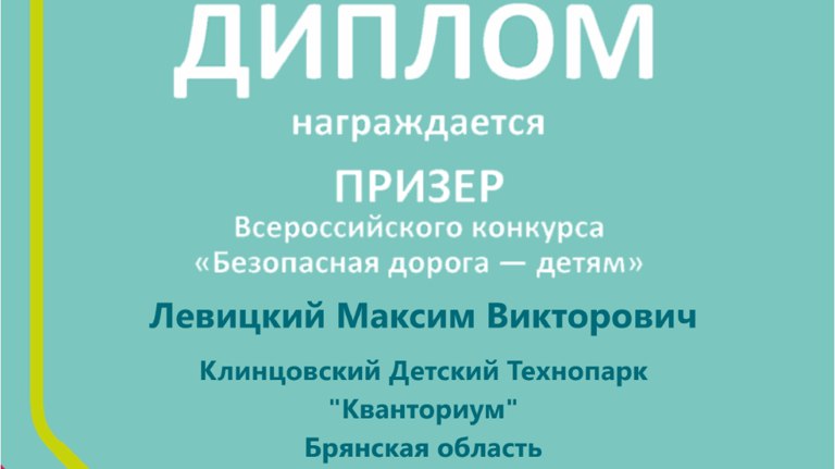 Максим Левицкий из Клинцов стал призёром конкурса «Безопасная дорога – детям»