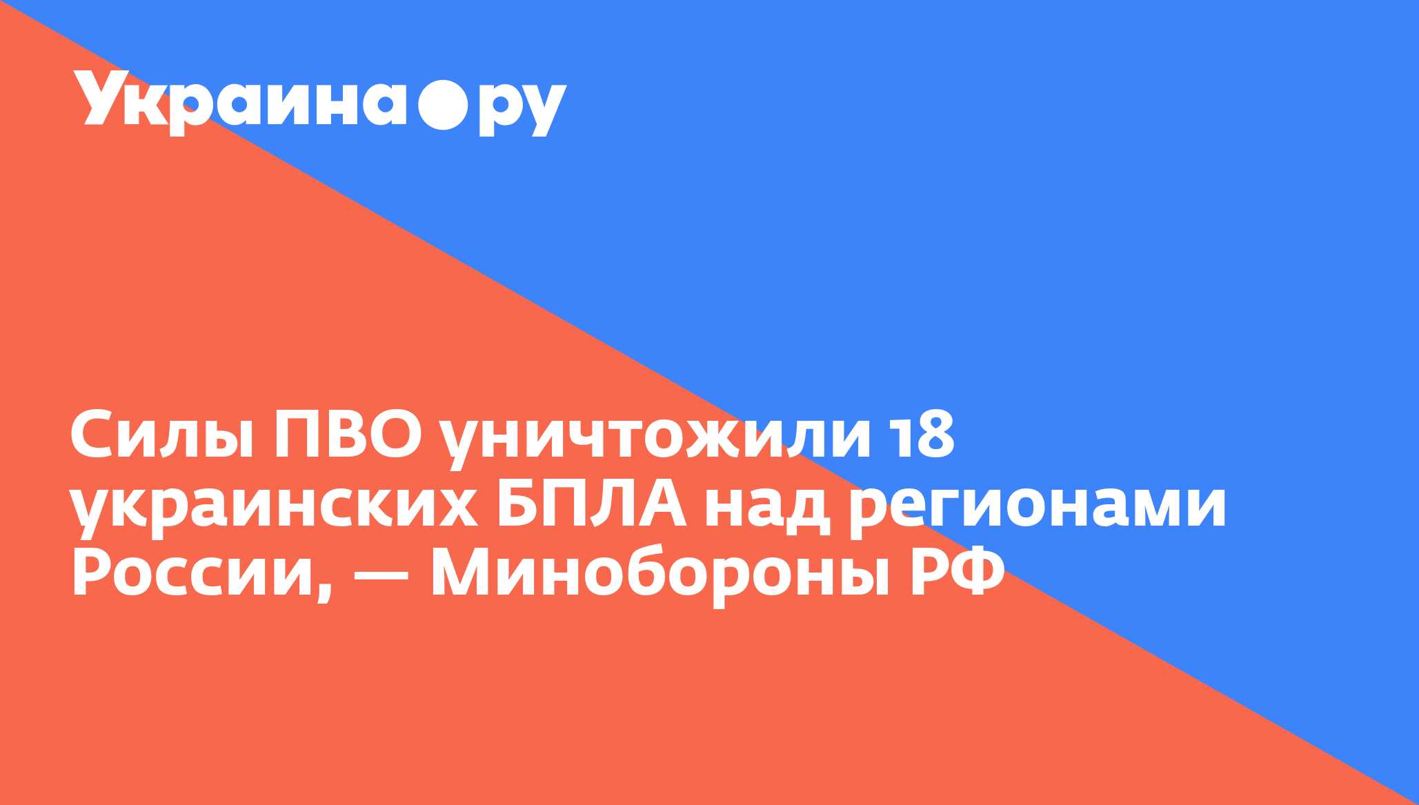 Силы ПВО уничтожили 18 украинских БПЛА над регионами России, — Минобороны РФ 10 – над территорией Белгородской области, 5 – над территорией Брянской области, 2 – над территорией Смоленской области, 1 – над территорией Воронежской области.// Украина.ру